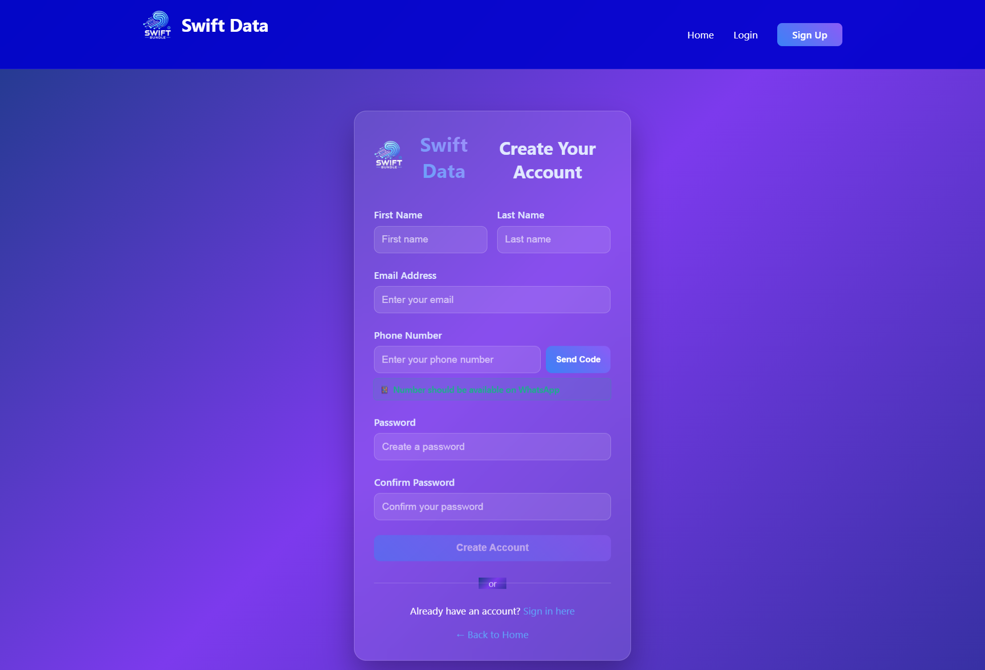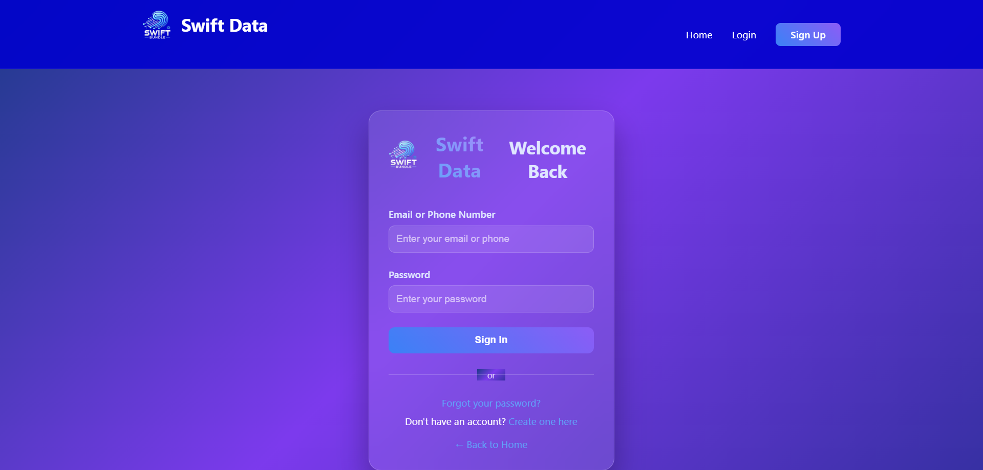 Built a lightweight digital bundles and wallet portal (Swift Data) that enables customers and agents to purchase mobile data, top up wallets, manage accounts, and process transactions. The application combines legacy PHP server-side pages for production workflows with a small Node.js/Express-based development API for local testing and API mocks. Features include phone-based OTP verification, wallet top-ups, transaction history, agent onboarding, admin list & user management, payment gateway test integrations, webhook handlers, and SMS notification flows.