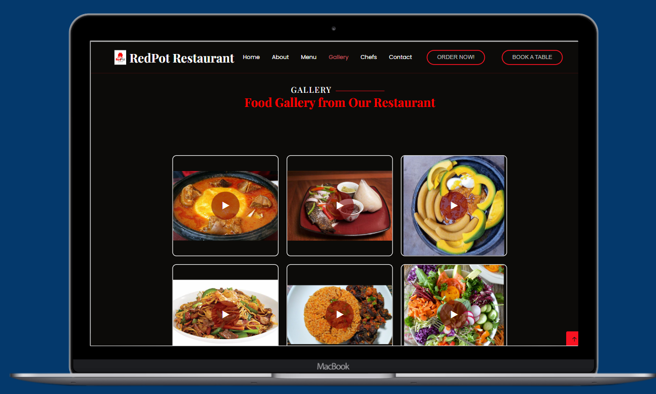 A Comprehensive restaurant website for RedPot Restaurant, a Ghanaian cuisine establishment serving authentic traditional dishes. This digital platform showcases the restaurant's menu, history, team, and services while enabling customers to explore offerings, make reservations, and connect with the business. The website features an engaging user interface highlighting customer testimonials, a visual food gallery, and complete contact information to enhance customer engagement and streamline the dining experience.